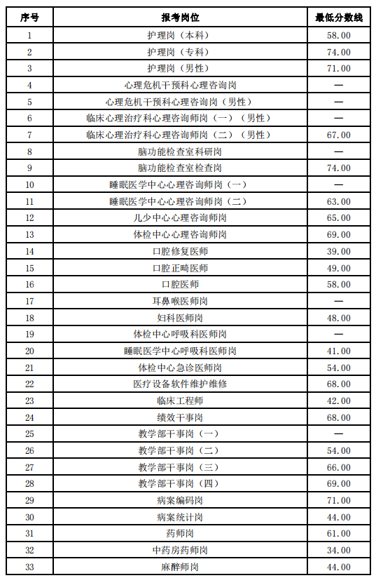 參加筆試的考生請于2021年9月29日起登陸報名網(wǎng)站(網(wǎng)址:http://www.ccxdhr.com)查詢筆試成績,筆試成績崗位最低分數(shù)線如下: