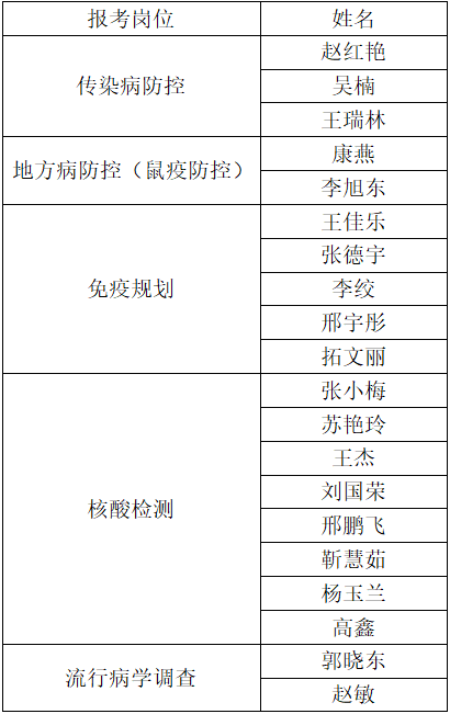 根據(jù)清水河縣疾病預(yù)防控制中心2022年公開招聘合同制工作人員公告,經(jīng)面試后,現(xiàn)對進(jìn)入體檢和考察范圍人員予以公示: