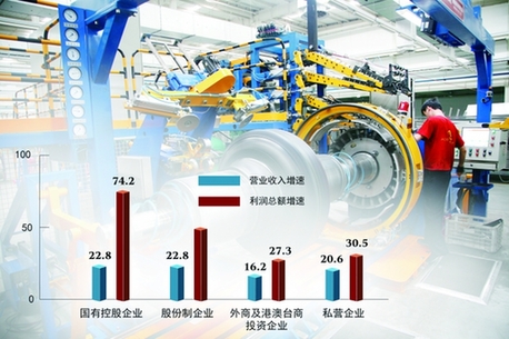 數(shù)據(jù)顯示,10月份私營企業(yè)利潤同比增長28.8%,增速較上月加快21個百分點,連續(xù)兩個月回升。其中,有14個行業(yè)利潤增速在20%以上,呈現(xiàn)良好發(fā)展勢頭。私營企業(yè)對規(guī)模以上工業(yè)企業(yè)利潤增長的貢獻率為42.7%,較上月提高27.6個百分點。